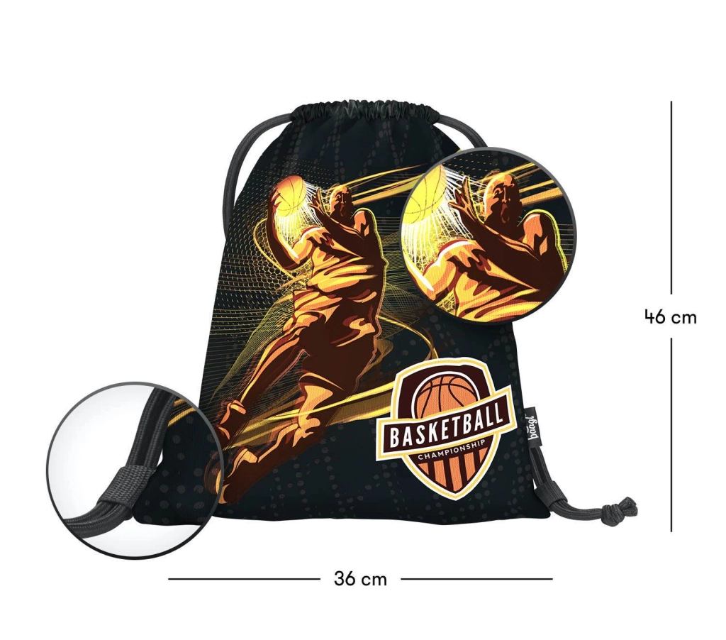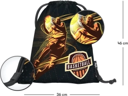 Πρακτικό αθλητικό σακουλάκι από ανθεκτικό, πλενόμενο υλικό, ιδανικό για γυμναστική, παντοφλάκια ή προπονητικό εξοπλισμό. Χάρη στις ανθεκτικές κορδονιέρες σφίγγει εύκολα και μπορεί να φορεθεί άνετα στην πλάτη. Το στιλάτο μπασκετικό μοτίβο θα χαροποιήσει όλους τους φίλους του αθλήματος.