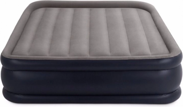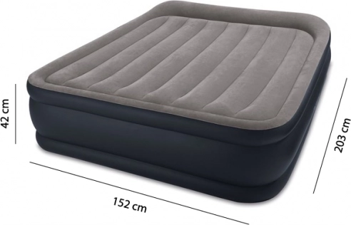 Διπλό φουσκωτό στρώμα IN TEX με διαστάσεις 203 × 152 × 42 cm που προσφέρει μέγιστη άνεση για επισκέπτες και ταξίδια. Ανθεκτικό υλικό PVC με βελουδένια, αδιάβροχη επιφάνεια ευχάριστη στην αφή και αντιολισθητική. Η ενσωματωμένη ηλεκτρική αντλία εξασφαλίζει γρήγορο φούσκωμα σε περίπου 3 λεπτά και ξεφούσκωμα σε 1 λεπτό. Χάρη στην τεχνολογία Dura-Beam Fiber το στρώμα στηρίζει άριστα το σώμα και παραμένει σταθερό όλη τη νύχτα.