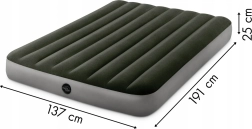 Το φουσκωτό στρώμα INTEX για δύο άτομα συνδυάζει ανθεκτική βάση από PVC με μαλακή, αδιάβροχη βελούδινη επιφάνεια για μεγαλύτερη άνεση κατά την κατάκλιση. Η εσωτερική κατασκευή με σταθεροποιητικές ίνες Dura‑Beam Fiber κατανέμει την πίεση του σώματος, μειώνει τις ανεπιθύμητες ταλαντώσεις και εξασφαλίζει εργονομική υποστήριξη της πλάτης όλη τη νύχτα.