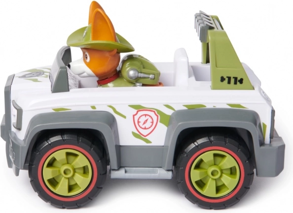 Ξεκινήστε αποστολή διάσωσης με τον Tracker και το τζιπ του, εμπνευσμένο από τη δημοφιλή σειρά PAW PATROL. Το λευκό και πράσινο εκτός δρόμου όχημα με μοτίβα ζούγκλας είναι έτοιμο για δράση και η φιγούρα τοποθετείται άνετα στη θέση του οδηγού. Ιδανικό για λάτρεις των περιπετειών στη φύση και δυναμικών σεναρίων παιχνιδιού.