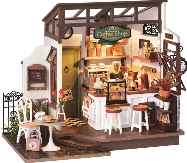Μπείτε στην ατμόσφαιρα μιας ζεστής καφετέριας στο σπίτι σας. Το 3D ξύλινο παζλ RoboTime παρουσιάζει ένα λεπτομερές διοράμα με πάγκο μπαρ, σκαμπό, φυτά, επιγραφές και αξεσουάρ, που μαζί δημιουργούν ένα αρμονικό σύνολο. Χάρη στον μελετημένο σχεδιασμό από ποιοτικό ξύλο, το μοντέλο είναι στιβαρό, ακριβές και μετά τη συναρμολόγηση δείχνει υπέροχο ως διακόσμηση ή συλλεκτικό κομμάτι.