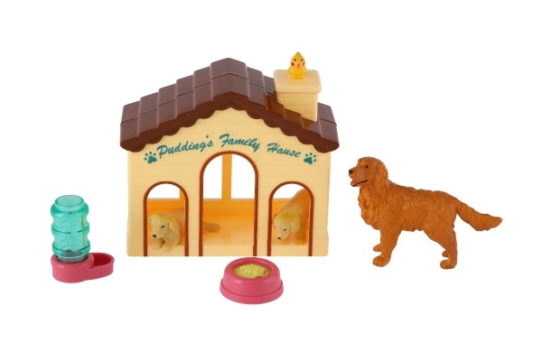 Περιλαμβάνονται δύο κουταβάκια, ένας ενήλικος σκύλος, μπολάκι φαγητού και ποτίστρα – όλα όσα χρειάζονται τα παιδιά για ρεαλιστικό παιχνίδι.