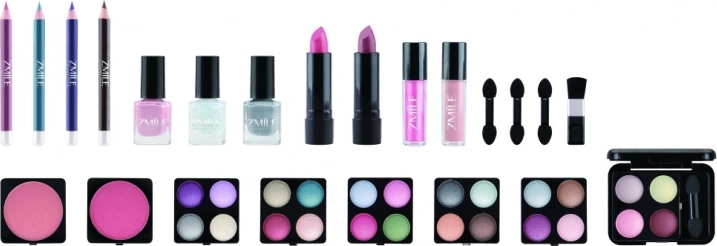 Το σετ περιλαμβάνει 24 αποχρώσεις σκιών ματιών για καθημερινό και βραδινό μακιγιάζ, 2 κλασικά βερνίκια και 1 γκλίτερ βερνίκι νυχιών, ρουζ, 2 κραγιόν, 2 γκλος χειλιών, 4 μολύβια ματιών, 3 διπλά απλικατέρ και 1 πινέλο. Όλα είναι δερματολογικά ελεγμένα και πληρούν τις προδιαγραφές της ΕΕ, ώστε να απολαμβάνετε την ομορφιά με αίσθημα ασφάλειας.