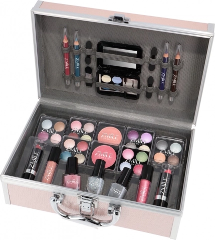 Στιλάτη ροζ κασετίνα καλλυντικών Eye-Catcher με ενσωματωμένο καθρεφτάκι που προσφέρει πλήρη εξοπλισμό μακιγιάζ με συνολικά 42 κομμάτια. Θα βρείτε 24 σκιές ματιών, βερνίκι νυχιών συμπεριλαμβανομένου γκλίτερ, ρουζ, κραγιόν και λιπ γκλος, μολύβια ματιών καθώς και απλικατέρ και πινέλο. Δερματολογικά ελεγμένο και σε συμμόρφωση με τις αυστηρές προδιαγραφές της ΕΕ.