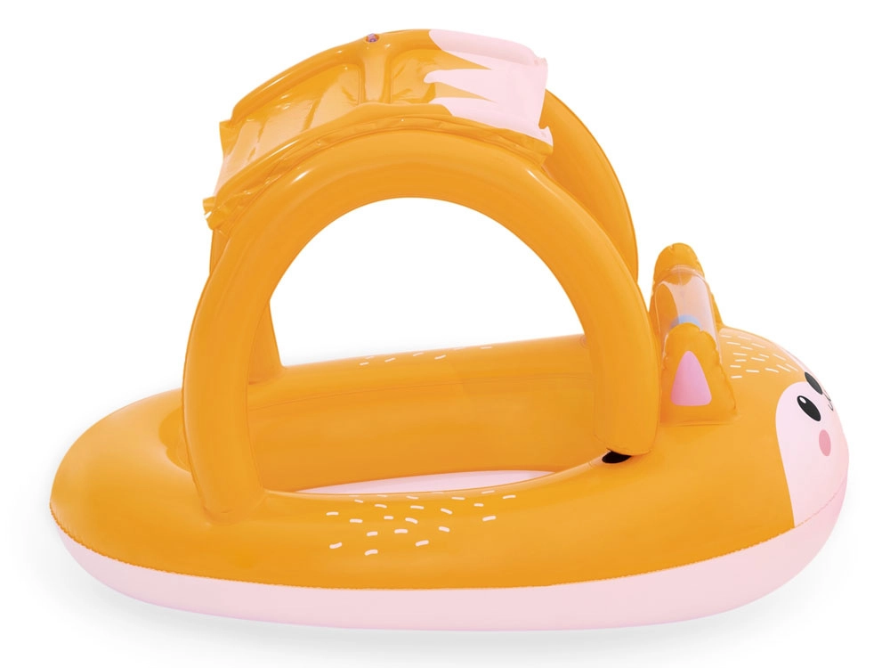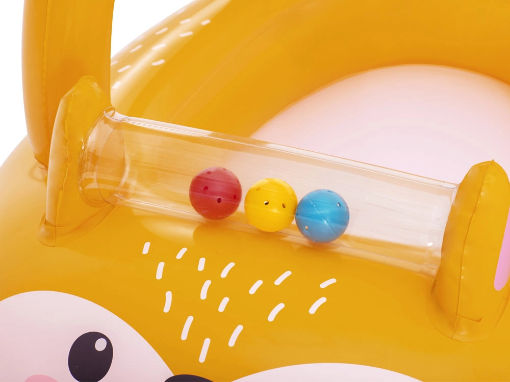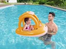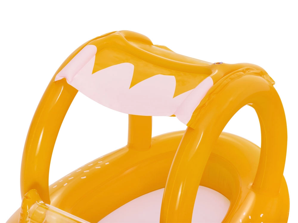 Η βαρκούλα διαθέτει φουσκωτό πάτωμα για μέγιστη άνεση και διάφανο παραθυράκι τύπου peek-a-boo, που επιτρέπει στα παιδιά να κοιτούν τον υποβρύχιο κόσμο. Η αποσπώμενη οροφή προσφέρει προστασία από τον ήλιο.
