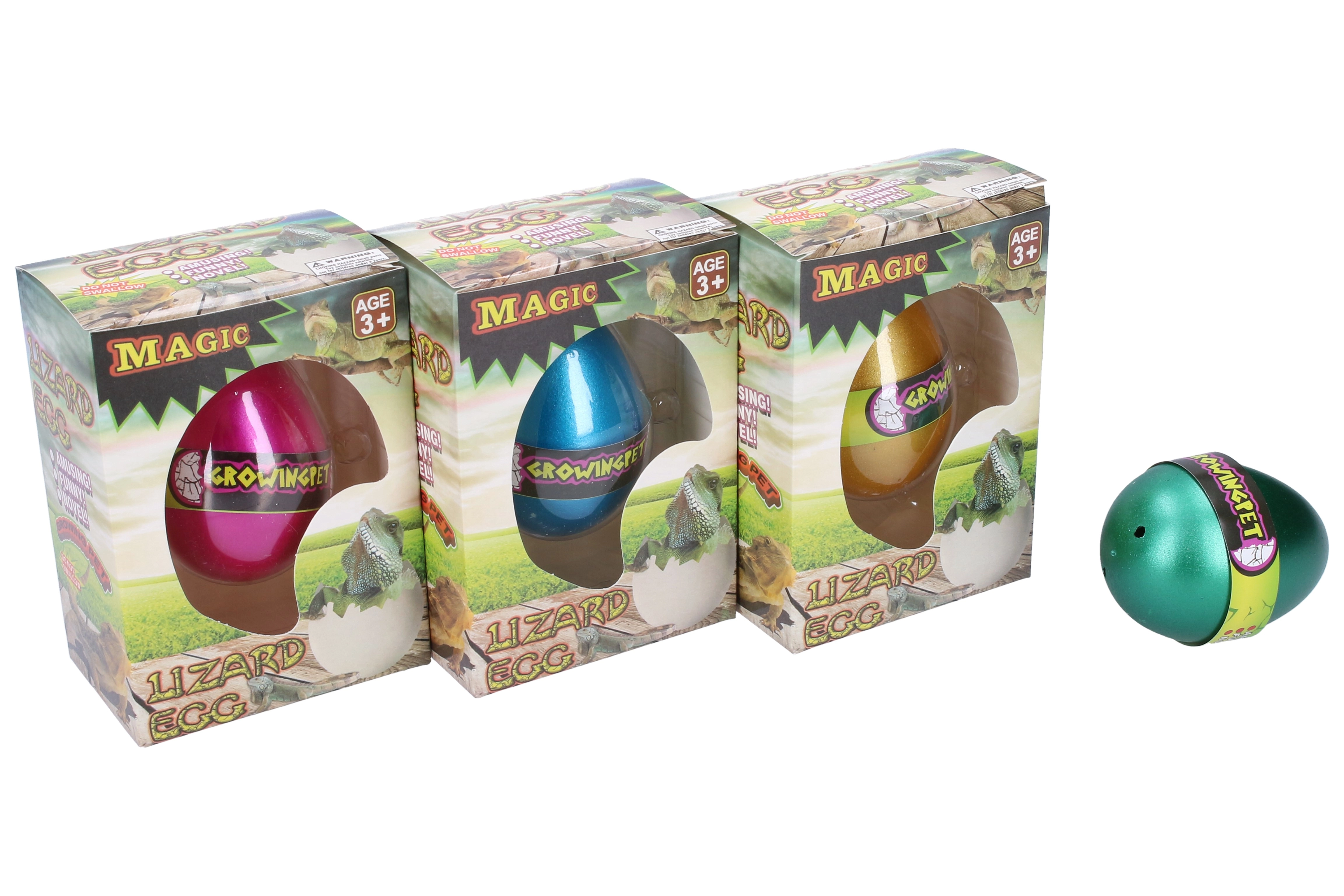Αυτά τα απίθανα αυγά κρύβουν ένα μυστικό – μια μαγικά αναπτυσσόμενη σαύρα! Απλώς τοποθετήστε το αυγό στο νερό και παρακολουθήστε το καθώς εκκολάπτεται αργά και μεγαλώνει σε απίστευτες διαστάσεις. Διατίθεται σε τέσσερις χρωματικές επιλογές: μπλε, χρυσό, πράσινο και μωβ, προσφέροντας ποικιλία και ενθουσιασμό σε κάθε άνοιγμα.