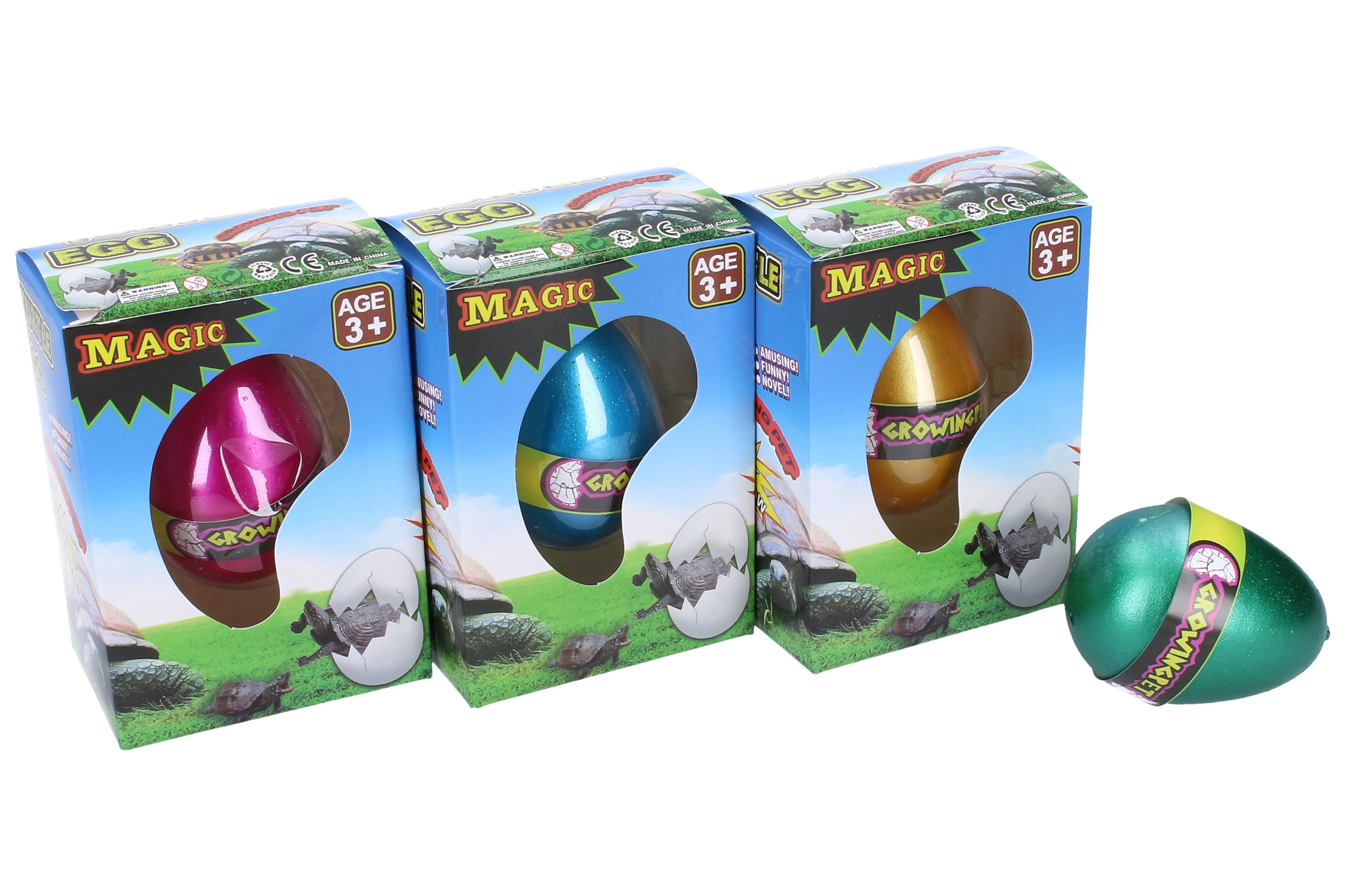 Ανακαλύψτε τον διασκεδαστικό κόσμο του παιχνιδιού με μια χελώνα που μεγαλώνει, κρυμμένη μέσα σε αυγό. Το αυγό βυθίζεται στο νερό και μέσα σε λίγες ημέρες εκκολάπτεται μια χελώνα που θα ξαφνιάσει τη γεμάτη περιέργεια φαντασία σας.