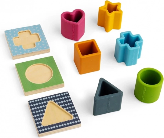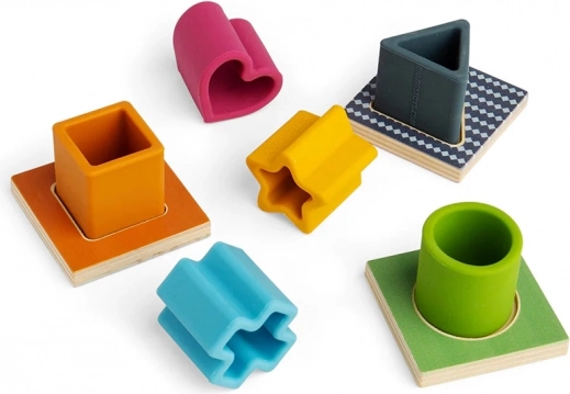 Περιλαμβάνει σιλικονούχα σχήματα και ξύλινες βάσεις που επιτρέπουν διάφορα σενάρια παιχνιδιού και ενθαρρύνουν τη δημιουργικότητα.