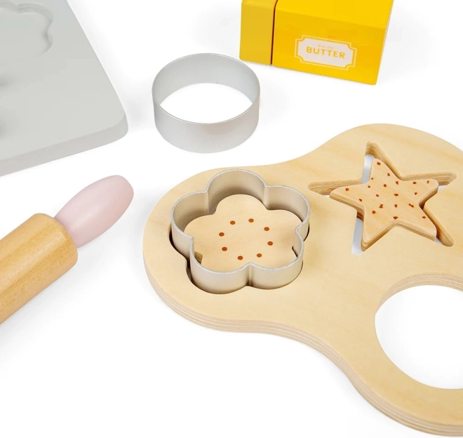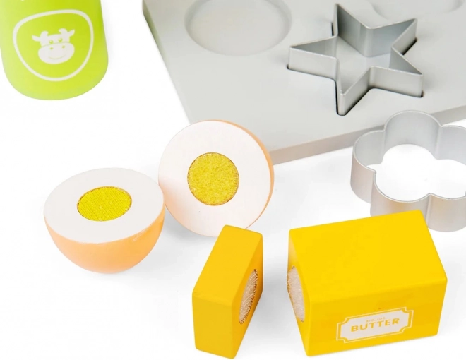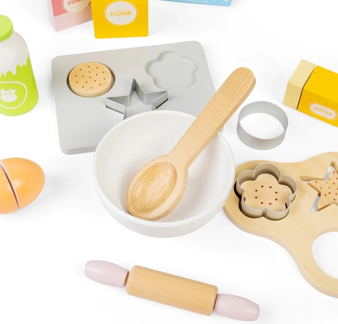 Με αυτό το παιδικό ξύλινο σετ ζαχαροπλαστικής μπορείτε να προσφέρετε στα παιδιά ατελείωτες ώρες διασκέδασης ενώ καλλιεργείτε τη φαντασία τους. Το σετ περιλαμβάνει ξύλινο ταψί ψησίματος, ζυγαριά, κουπ πατ, πλάστη, μπολ, βούτυρο, αυγά, αλεύρι, ζάχαρη και γάλα. Η ασφάλεια στην κουζίνα μαθαίνεται παιχνιδιάρικα και ευχάριστα.