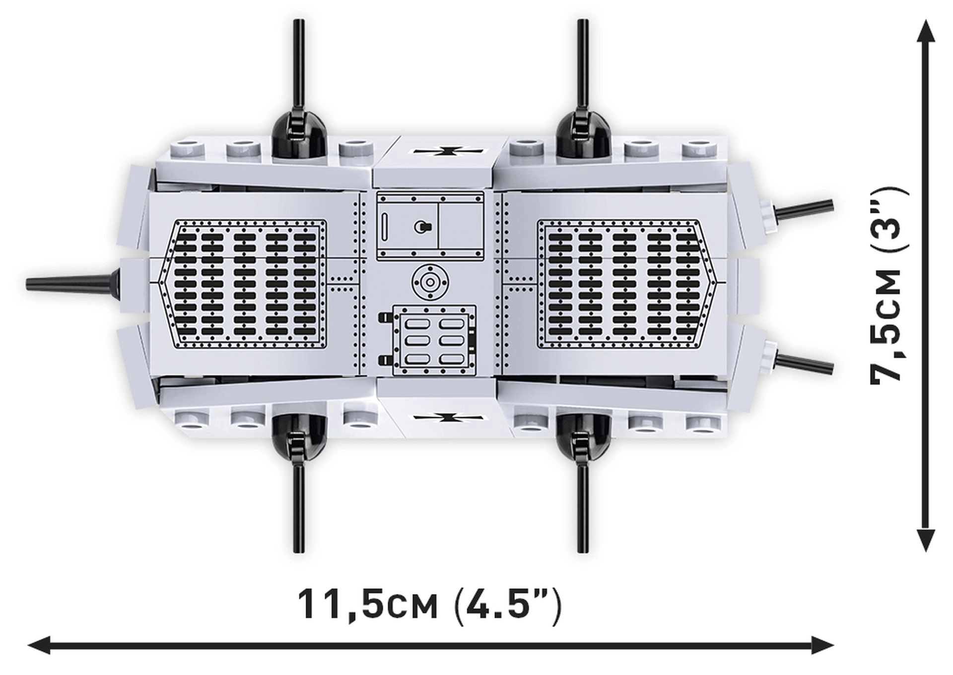 Τα κομμάτια είναι κατασκευασμένα στην ΕΕ, ανθεκτικά σε παραμόρφωση και ξεθώριασμα και πλήρως συμβατά με άλλα σετ των κύριων μαρκών. Χάρη στα κινητά πολυβόλα και στους κρυφούς τροχούς, το μοντέλο κινείται εύκολα πάνω σε επιφάνειες. Είναι τέλεια αρχή στον κόσμο των ιστορικών σετ κατασκευής και ελκυστική προσθήκη σε συλλογή που χωρά σε γραφείο ή ράφι.
