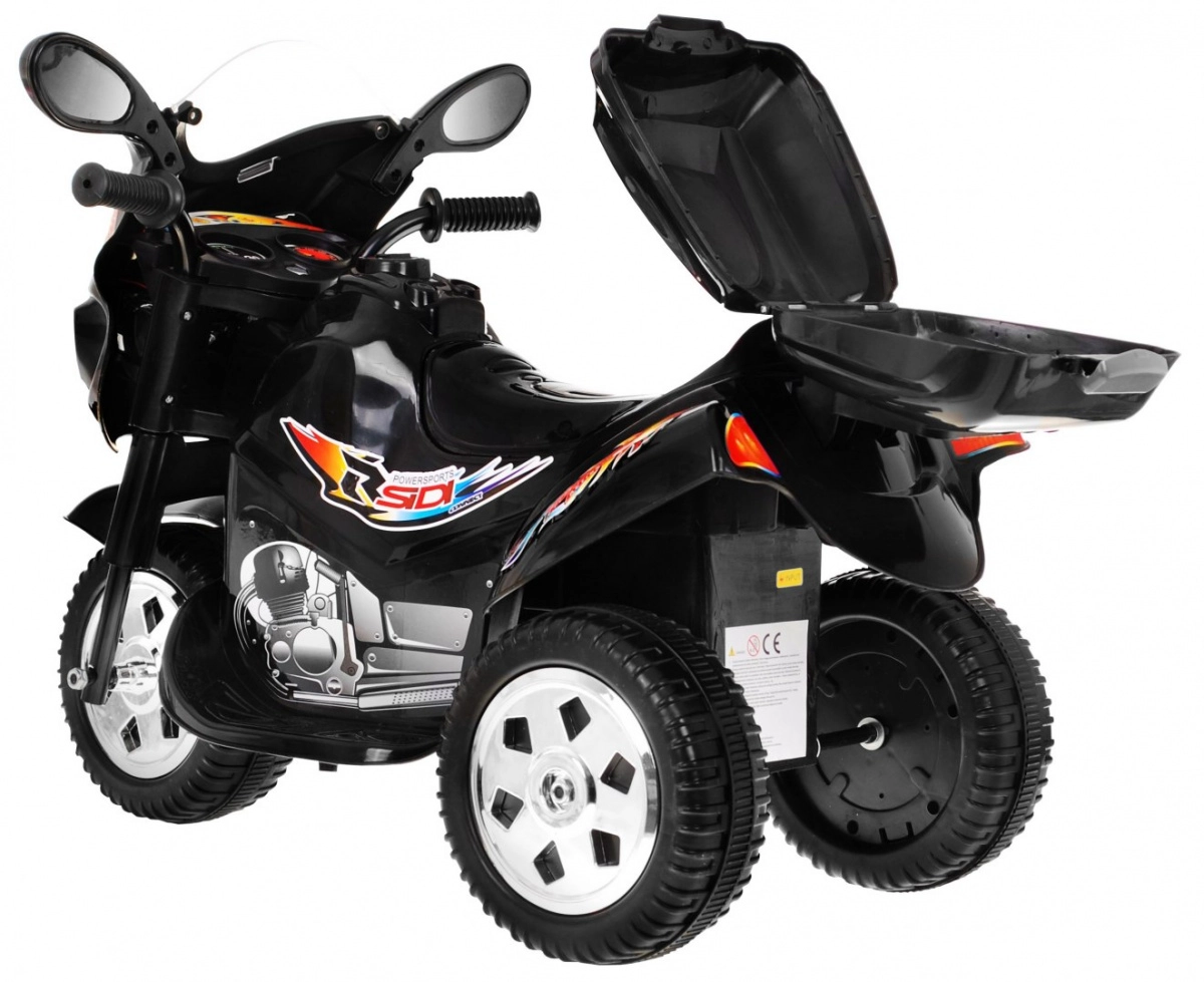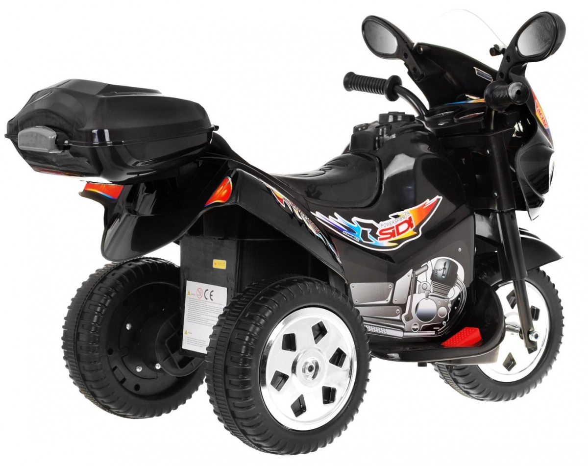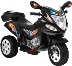 Ελαφριά και σταθερή παιδική μοτοσικλέτα με τρία τροχάκια που προσφέρει ασφαλή οδήγηση για τους μικρότερους. Χάρη στον κινητήρα 18 W, την μπαταρία 6 V, τα ελαστικά πέλματα τροχών και τα μπροστινά φώτα, τα παιδιά απολαμβάνουν διασκέδαση μέσα και έξω. Περιλαμβάνονται κόρνα και μελωδίες για ακόμη μεγαλύτερη απόλαυση οδήγησης.