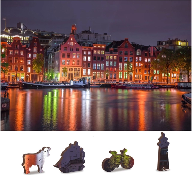 Κάθε κομμάτι είναι μέρος του συνόλου, αλλά έχει και το δικό του μοναδικό σχήμα που απεικονίζει αστικά κτήρια, ζώα ή αντικείμενα. Παράλληλα, η συναρμολόγηση είναι πιο απαιτητική, κάτι που συμβάλλει σε μεγαλύτερη διασκέδαση και πρόκληση. Το παζλ κοσμείται επίσης από την παραμυθένια νυχτερινή σκηνογραφία του Άμστερνταμ, η οποία είναι άψογα χαραγμένη σε κάθε κομμάτι.