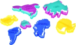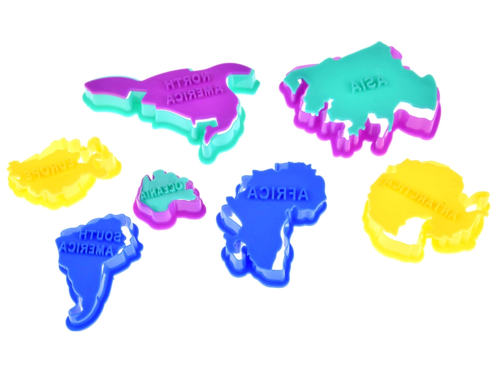 Το σετ περιλαμβάνει όλα τα απαραίτητα: πλαστελίνη σε πέντε χρώματα, 7 καλούπια σε σχήμα ηπείρων, 7 σφραγίδες με τα ονόματα των ηπείρων και έναν πλάστη. Αρκεί να ανοίξετε την πλαστελίνη σε πιο λεπτό φύλλο και με τα κουπ πατ να δημιουργήσετε τις επιλεγμένες ηπείρους.