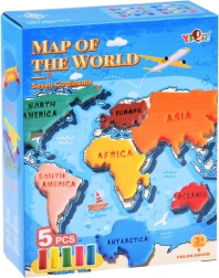 Αυτό το καλλιτεχνικό σετ είναι ιδανικό για παιδιά που αγαπούν τις εικαστικές δραστηριότητες. Αναπτύσσει τη λεπτή κινητικότητα, τη φαντασία και τη δημιουργικότητα. Το σετ σάς επιτρέπει όχι μόνο να δημιουργείτε σχήματα ηπείρων, αλλά και να μαθαίνετε τα ονόματά τους στα αγγλικά, διευρύνοντας έτσι τις γεωγραφικές σας γνώσεις.
