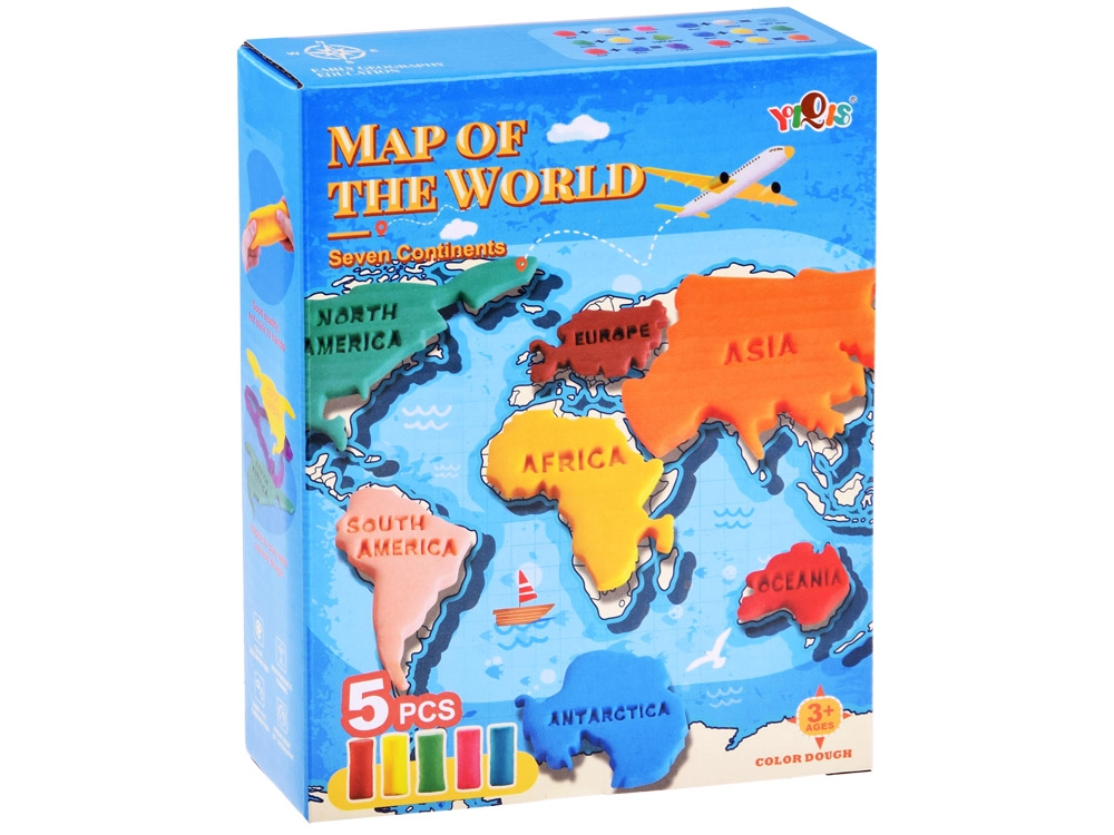 Περιλαμβάνει πολύχρωμες πλαστελίνες και καλούπια που βοηθούν τα παιδιά να μάθουν τα γεωγραφικά σχήματα.