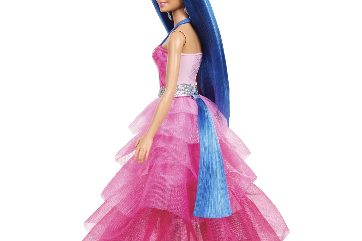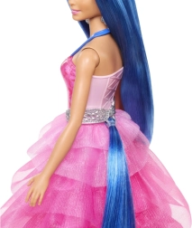 Εμπνευσμένη από την ταινία Barbie Η Αφή της Μαγείας, με κομψό φόρεμα σε περλέ ροζ ombré εφέ και σαπφειρένιες λεπτομέρειες προς τιμήν των 65 χρόνων της BARBIE.