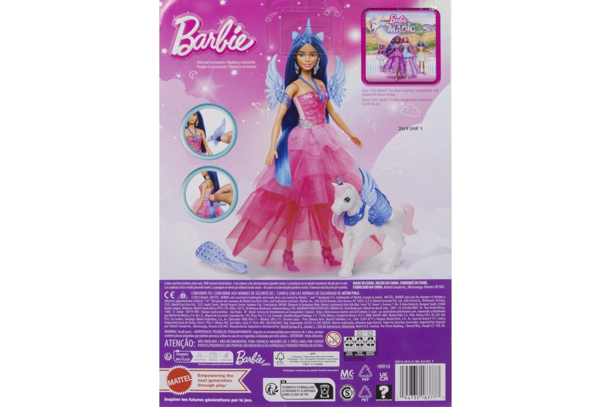 Αυτή η ειδική έκδοση, εμπνευσμένη από την ταινία Barbie Η Αφή της Μαγείας, λάμπει με περλέ ροζ πολύστρωτη τουαλέτα, ενώ σαπφειρένιες μπλε πινελιές τιμούν τα 65 χρόνια της μάρκας BARBIE. Με πλούσια αξεσουάρ και λεπτομέρειες, είναι ιδανική για δημιουργικό παιχνίδι, styling και συλλογή.