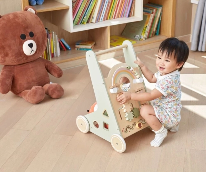 Στιλάτη ξύλινη περπατούρα για βρέφη από τη σειρά PolarB της Viga, που συνδυάζει στήριξη στα πρώτα βήματα με ένα πολυλειτουργικό ενεργό πάνελ για παιχνίδι και μάθηση. Περιλαμβάνει γρανάζια, ταξινόμηση σχημάτων, καθρεφτάκι, χάντρες, συρόμενα στοιχεία και μικρό μαυροπίνακα. Υποστηρίζει τη λεπτή και αδρή κινητικότητα, την ομαδική κίνηση/συντονισμό και την αυτοπεποίθηση στο περπάτημα.