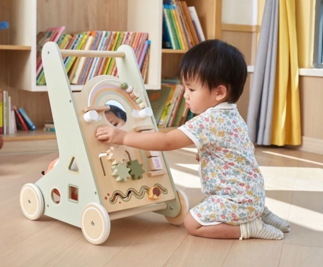 Η ανθεκτική ξύλινη κατασκευή και οι λείας κύλισης ρόδες βοηθούν το παιδί να εξασκείται στο περπάτημα και την ισορροπία με σιγουριά και ασφάλεια.