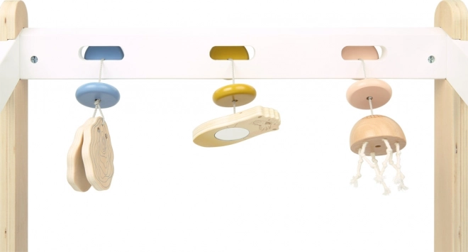 Το παιδικό γυμναστήριο Seaside είναι ένα μοναδικό παιχνίδι που συνδυάζει φυσικά υλικά και απαλές, μοντέρνες αποχρώσεις για να εμπλουτίσει τις αισθήσεις του παιδιού σας. Περιλαμβάνει θαλάσσια βίδρα με καθρεφτάκι για οπτικά ερεθίσματα, μέδουσα με πλοκάμια για απτικά ερεθίσματα και χαρούμενο στρείδι για ακουστικές ανακαλύψεις. Ο σχεδιασμός έχει γίνει με γνώμονα την καταλληλότητα ηλικίας, ώστε να υποστηρίζει την αισθητηριακή ανάπτυξη χωρίς υπερφόρτωση.