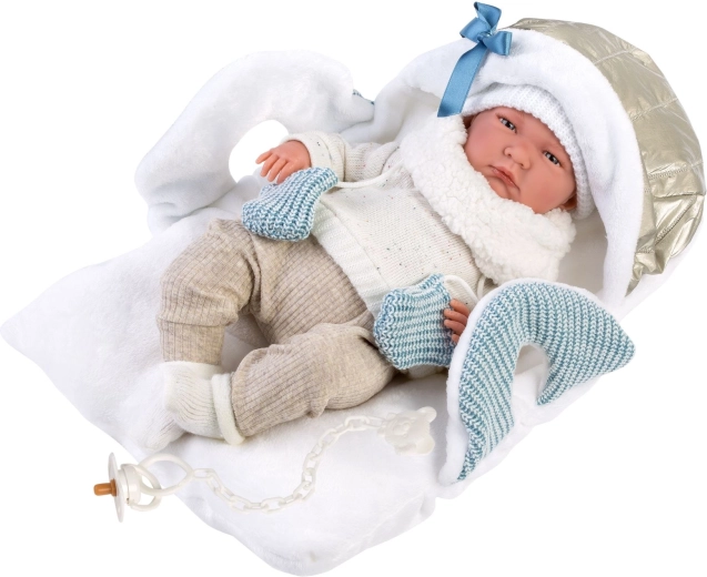 Η πρακτική βάση επιτρέπει να τοποθετήσετε την κούκλα άνετα και να τη μεταφέρετε με ασφάλεια. Η κουκούλα και τα μαλακά υλικά προσφέρουν ζεστασιά στο σπίτι και στα ταξίδια.