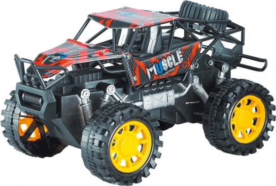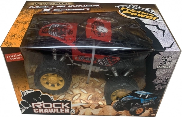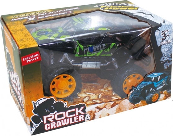 Αυτό το ανθεκτικό μοντέλο rock crawler είναι φτιαγμένο για περιπέτεια. Χάρη στην κίνηση τριβής αρκεί να το τραβήξετε πάνω στην επιφάνεια και να το αφήσετε – ξεκινά αμέσως μπροστά. Οι μεγάλοι εκτός δρόμου τροχοί και το ανυψωμένο σασί ξεπερνούν εμπόδια, χαλιά και υπαίθριες επιφάνειες.