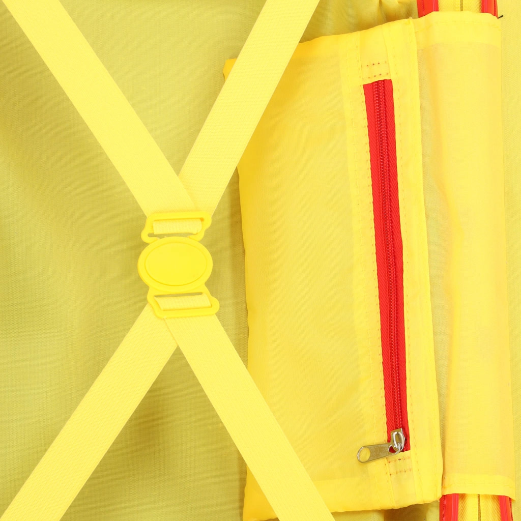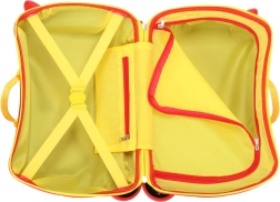 Ανθεκτικό πλαστικό κέλυφος, αντοχή έως 20 kg και ενσωματωμένα υποπόδια επιτρέπουν στο παιδί να καθίσει άνετα και να μετακινηθεί – ιδανικό για αεροδρόμια και σταθμούς. Το εσωτερικό σε έντονο κίτρινο χρώμα προσθέτει παιχνιδιάρικη εμφάνιση και καλύτερη ορατότητα των αποθηκευμένων αντικειμένων.