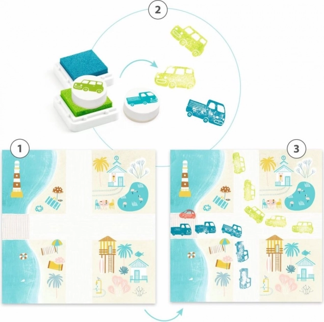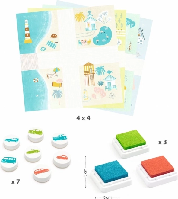Το σετ σφραγίδων Αυτοκίνητα από την DJECO είναι το ιδανικό εργαλείο για μικρούς καλλιτέχνες, καθώς περιλαμβάνει ό,τι χρειάζεται για τη δημιουργία υπέροχων εικόνων με θέμα τα αυτοκίνητα. Τα παιδιά μπορούν να φτιάξουν τις δικές τους σκηνές και ιστορίες με τη βοήθεια χρωματιστών σφραγίδων και καρτών.
