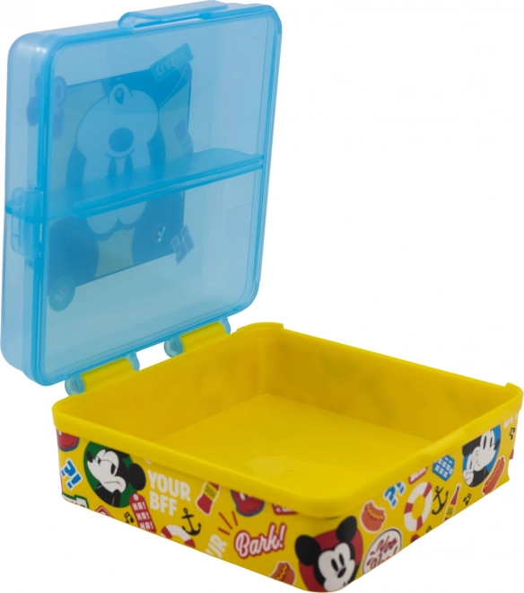 Το αυθεντικό κουτί φαγητού με το αγαπημένο σχέδιο MICKEY MOUSE είναι ιδανικό για το σχολείο, την παιδική χαρά και τις εκδρομές. Χάρη στα χωρίσματα, ετοιμάζετε εύκολα ένα ισορροπημένο κολατσιό και κρατάτε τα τρόφιμα χωριστά. Το ανθεκτικό πλαστικό αντέχει την καθημερινή χρήση και περιστασιακές πτώσεις.