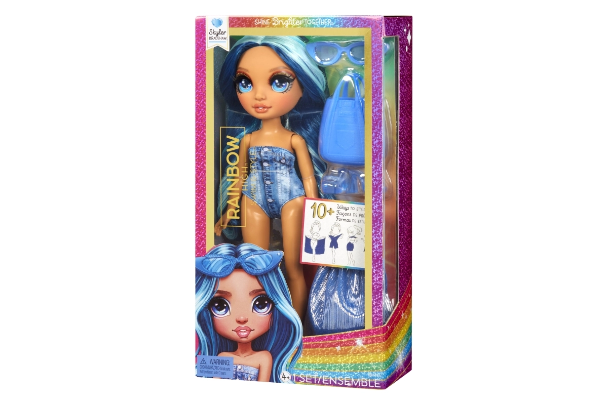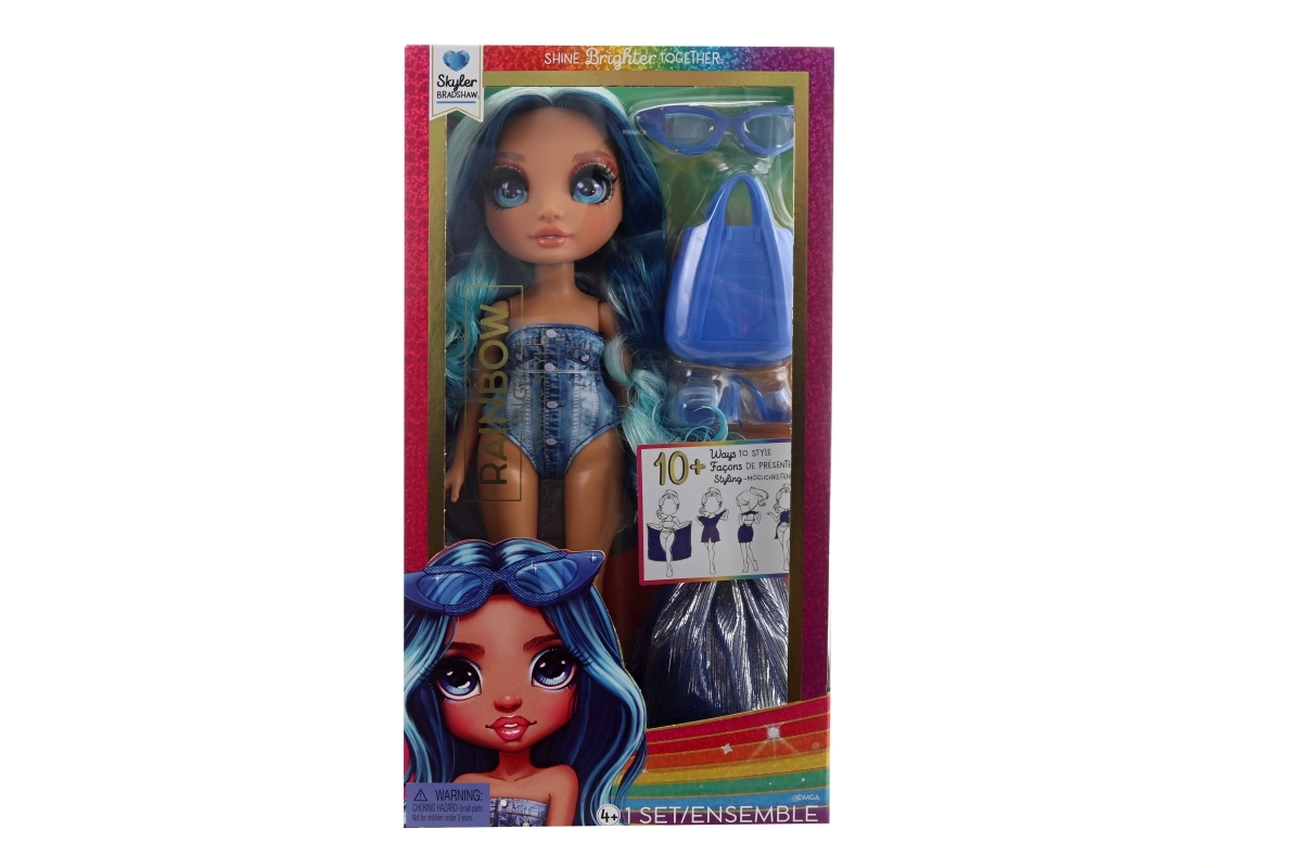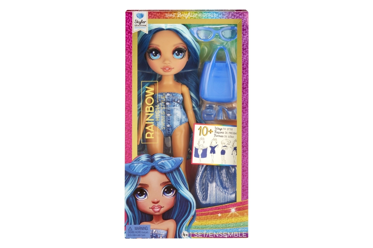 Η κούκλα SKYLER από τη συλλογή Rainbow High Swim & Style εντυπωσιάζει με τα μακριά γαλάζια μαλλιά, τα trend μαγιό και τα πολλά αξεσουάρ για ατελείωτες δυνατότητες styling. Χάρη στα αρθρωτά άκρα παίρνει εύκολα πόζες και είναι έτοιμη για κάθε καλοκαιρινή περιπέτεια.