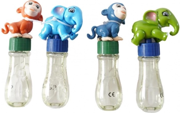 - Μπουκαλάκι με υγρό φουσκών και ραβδάκι, καπάκι με ζωάκι