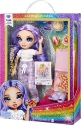 Ανακαλύψτε έναν κόσμο χρωμάτων και στυλ με την κούκλα Rainbow High Junior High – Violet Purple. Αυτή η συλλεκτική και παιχνιδιάρικη κούκλα δείχνει φανταστική με μοβ καρό πιτζάμες, απαλό μπλουζάκι και ταιριαστές παντοφλίτσες. Τα μακριά μοβ μαλλιά, οι έντονες βλεφαρίδες και τα γυάλινα μάτια προσδίδουν ρεαλιστική και γοητευτική εμφάνιση που τα παιδιά λατρεύουν.