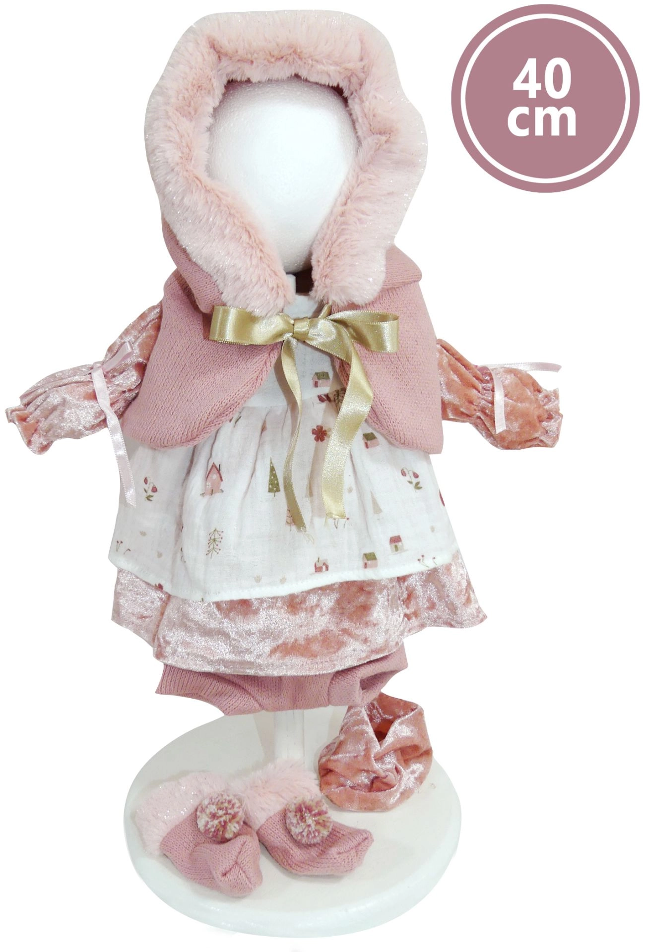 Αυτό το στιλάτο σετ για κούκλα έχει σχεδιαστεί ώστε να ξεχωρίζει για την κομψότητα και την άνεσή του. Συνδυάζει απαλές ροζ αποχρώσεις με ζεστά στοιχεία και είναι ιδανικό τόσο για καθημερινό παιχνίδι όσο και για εορταστικές περιστάσεις. Το ράψιμο στο χέρι και τα προσεκτικά επιλεγμένα υλικά εξασφαλίζουν μεγάλη αντοχή και υπέροχη εμφάνιση.