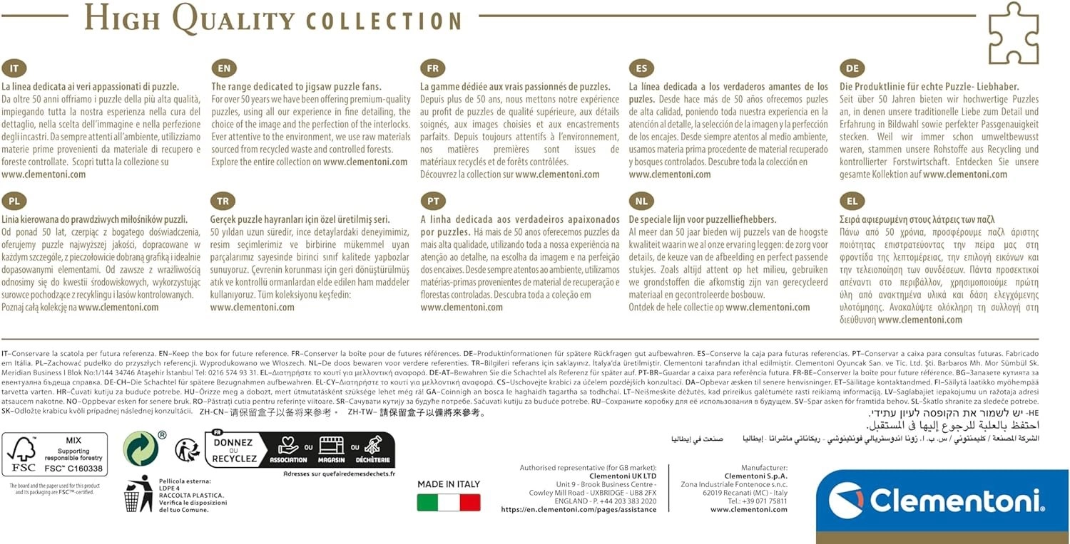 - Ποιοτικό υλικό – ανθεκτικό χαρτόνι παζλ και ειδική τεχνολογία εκτύπωσης για έντονα χρώματα και ακριβείς ενώσεις.