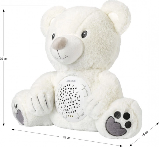 Το λούτρινο παιχνίδι με προβολέα Milly είναι ο ιδανικός βοηθός για γονείς στο ηρέμημα και στον ύπνο των βρεφών. Με την ενεργοποίηση του προβολέα, επιλέγεται τυχαία μία από τις 10 μελωδίες νανουρίσματος, ενώ προβάλλεται ο νυχτερινός ουρανός.