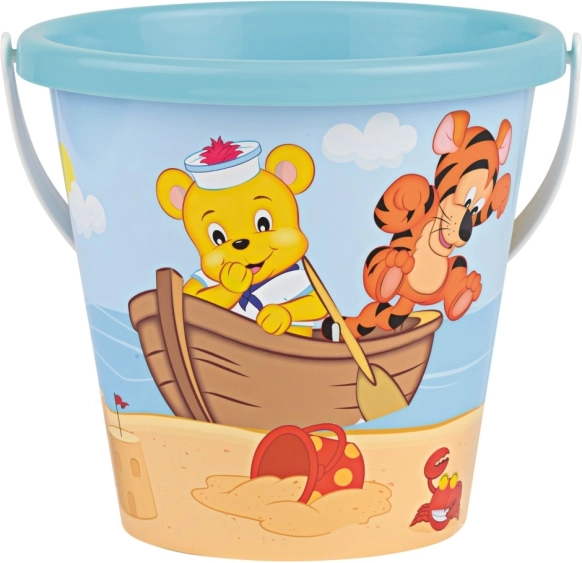 Ένας χαριτωμένος και ανθεκτικός κουβάς με χαρούμενες εικόνες αρκούδου και τιγρακίου που θα συνοδεύει τα παιδιά στο παιχνίδι τους στην παραλία και στο παιδότοπο με άμμο. Χάρη στις συμπαγείς διαστάσεις του κρατιέται άνετα και μεταφέρεται εύκολα, ενώ η στιβαρή χειρολαβή προσφέρει βολική μεταφορά βρεγμένης άμμου ή νερού.