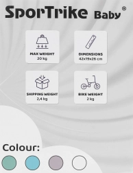 Το ποδηλατάκι ισορροπίας SporTrike PettyTrike είναι το ιδανικό πρώτο “ποδήλατο” για παιδιά περίπου από 1 έως 3 ετών. Χάρη στους τέσσερις τροχούς και το χαμηλό πλαίσιο προσφέρει εξαιρετική σταθερότητα, ώστε τα παιδιά να επικεντρώνονται στην ανάπτυξη της ισορροπίας και της κινητικότητας χωρίς φόβο πτώσης. Η ελαφριά κατασκευή διευκολύνει τον χειρισμό και τη μεταφορά από τους γονείς.