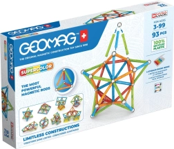 Ανακαλύψτε έναν δημιουργικό κόσμο με το μαγνητικό σετ κατασκευών Geomag Supercolor με 93 κομμάτια, που συνδυάζει απαλές παστέλ αποχρώσεις και ισχυρούς μαγνήτες για ατελείωτες κατασκευές. Όλα τα πλαστικά μέρη είναι κατασκευασμένα από 100% ανακυκλωμένο πλαστικό, ώστε τα παιδιά να διασκεδάζουν ενώ ταυτόχρονα υποστηρίζετε μια βιώσιμη επιλογή. Το σετ καλλιεργεί τη δημιουργικότητα, την χωρική αντίληψη και τη λεπτή κινητικότητα και κατασκευάζεται με ελβετική ακρίβεια και υψηλή ασφάλεια.