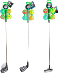 Διασκεδαστικό και ασφαλές παιδικό σετ γκολφ για μικρούς αθλητές που θέλουν να ανακαλύψουν τη μαγεία του γκολφ. Ιδανικό για παιχνίδι στον κήπο και στο σπίτι. Περιλαμβάνει ένα μπαστούνι γκολφ περίπου 60 cm και 4 πλαστικά μπαλάκια. Η εκδοχή του μπαστουνιού διατίθεται σε μείξη ανάλογα με τα αποθέματα.