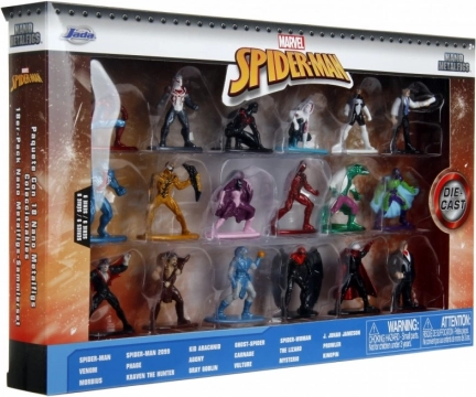 Στη συσκευασία δεν λείπουν οι εμβληματικοί ήρωες και οι φοβεροί κακοί: Spider‑Man, Spider‑Man 2099, Kid Arachnid, Ghost‑Spider, Spider‑Woman, J. Jonah Jameson, Venom, Phage, Agony, Carnage, The Lizard, Prowler, Morbius, Kraven the Hunter, Gray Goblin, Vulture, Mysterio και Kingpin. Το σετ είναι ένα εξαιρετικό δώρο για μικρούς και μεγάλους φίλους των κόμικς και των ταινιών.