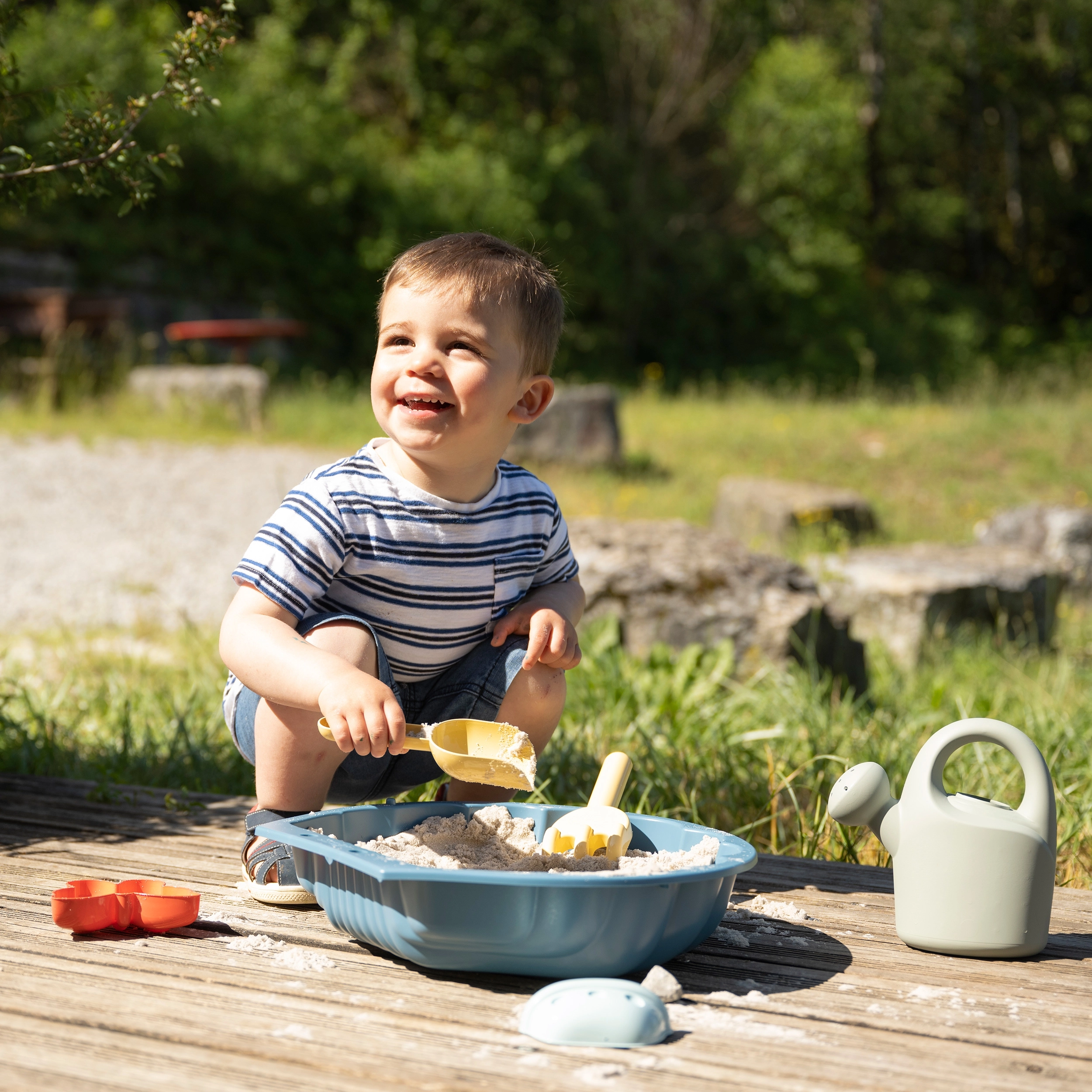 Άμμος και φαντασία: Τα παιδιά μπορούν να απολαύσουν δημιουργικό παιχνίδι με ποτιστήρι, τσουγκράνα, φτυαράκι και δύο καλούπια. Είναι ο τέλειος τρόπος για διασκέδαση στην ύπαιθρο, για να χτίζουν κάστρα από άμμο ή απλώς να παίζουν στη λάσπη.