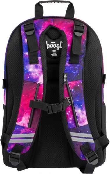 Ανακαλύψτε τον ιδανικό συνδυασμό λειτουργικότητας και στυλ. Το σχολικό σετ BAAGL Skate Galaxy προσφέρει ανθεκτική τσάντα με τριχωρική διάταξη, οργανωτή και μαλακή θήκη για φορητό 15" ή tablet. Η εργονομικά διαμορφωμένη πλάτη, οι πλήρως ρυθμιζόμενοι ιμάντες ώμου, θώρακα και οι πλαϊνοί ιμάντες σύσφιξης εξασφαλίζουν υγιεινή και άνετη μεταφορά όλη την ημέρα. Οι μπροστινοί ιμάντες χρησιμεύουν για στερέωση skateboard, οι πλαϊνές ελαστικές τσέπες χωρούν παγούρι και τα ανακλαστικά στοιχεία αυξάνουν την ορατότητα.