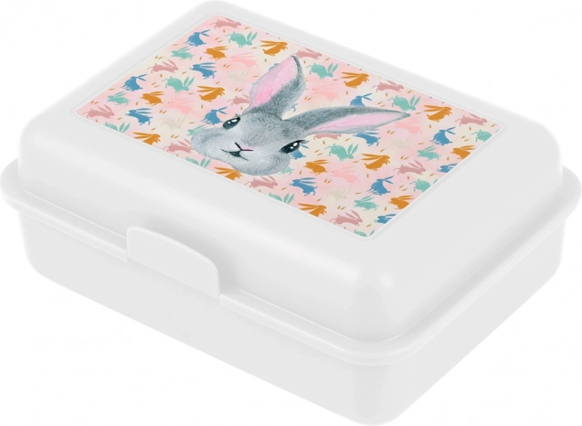 Πρακτικό κουτί για κολατσιό σε καθαρό λευκό χρώμα με χαριτωμένο μοτίβο Bunny, κρατά το φαγητό φρέσκο και τακτοποιημένα χωρισμένο χάρη στο διαχωριστικό χώρισμα. Αξιόπιστο κλείσιμο με ένα κλιπ που αποτρέπει το ανεπιθύμητο άνοιγμα στην τσάντα. Ιδανικό για το σχολείο, τις εκδρομές και τη δουλειά.