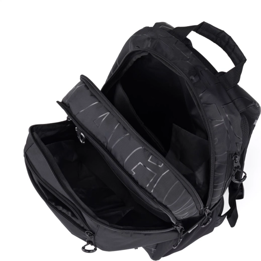 Στο εσωτερικό διαθέτει ενισχυμένη θήκη για φορητό υπολογιστή, καραμπίνερ για κλειδιά, μικρή τσέπη για μικροαντικείμενα και κρυφή τσέπη στην πλάτη για τιμαλφή. Τον πρακτικό εξοπλισμό συμπληρώνουν η πλαϊνή τσέπη για μπουκάλι και τα ανακλαστικά στοιχεία για πιο ασφαλή κίνηση στην πόλη. Το σετ περιλαμβάνει επίσης φοιτητική κασετίνα με ελαστική ταινία για συγκράτηση γραφικής ύλης και κλείσιμο με φερμουάρ.