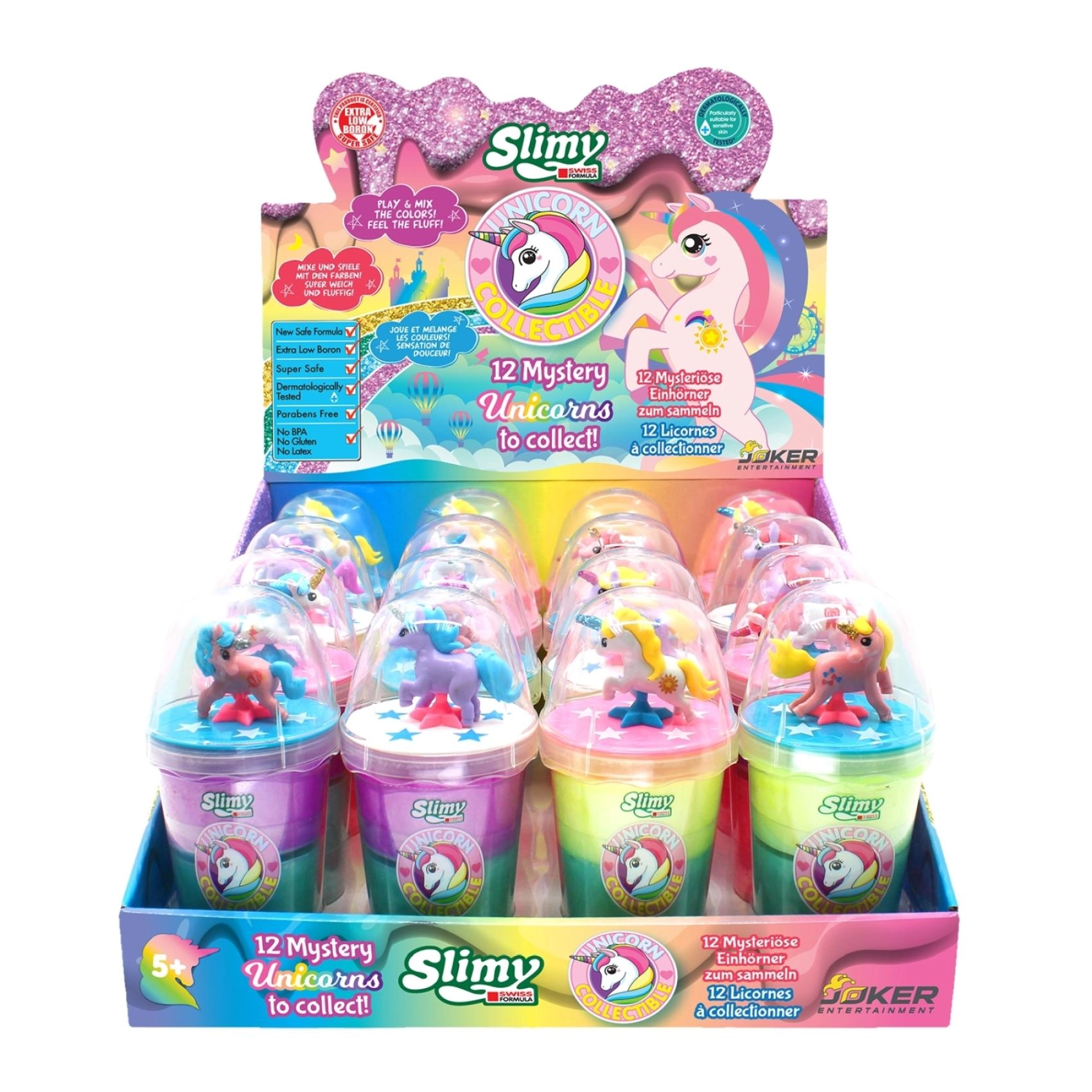 Απελευθερώστε τη φαντασία με το αυθεντικό Slimy, που συνδυάζει το αγαπημένο ζούληγμα, τέντωμα και διαμόρφωση με χαριτωμένες πολύχρωμες φιγούρες μονόκερων. Κάθε κεσεδάκι προσφέρει διαφορετικό χρωματικό συνδυασμό και σταθερή βάση, ώστε τα παιδιά να μπορούν να εκθέτουν τη φιγούρα τους ή να τη βάζουν στο παιχνίδι.