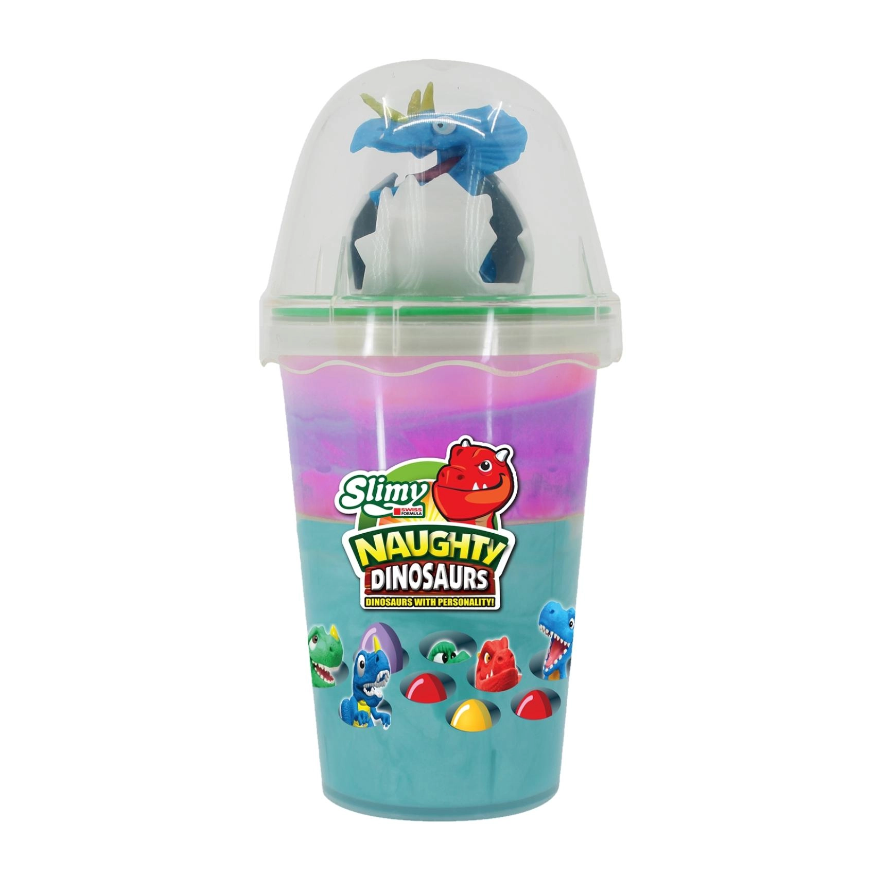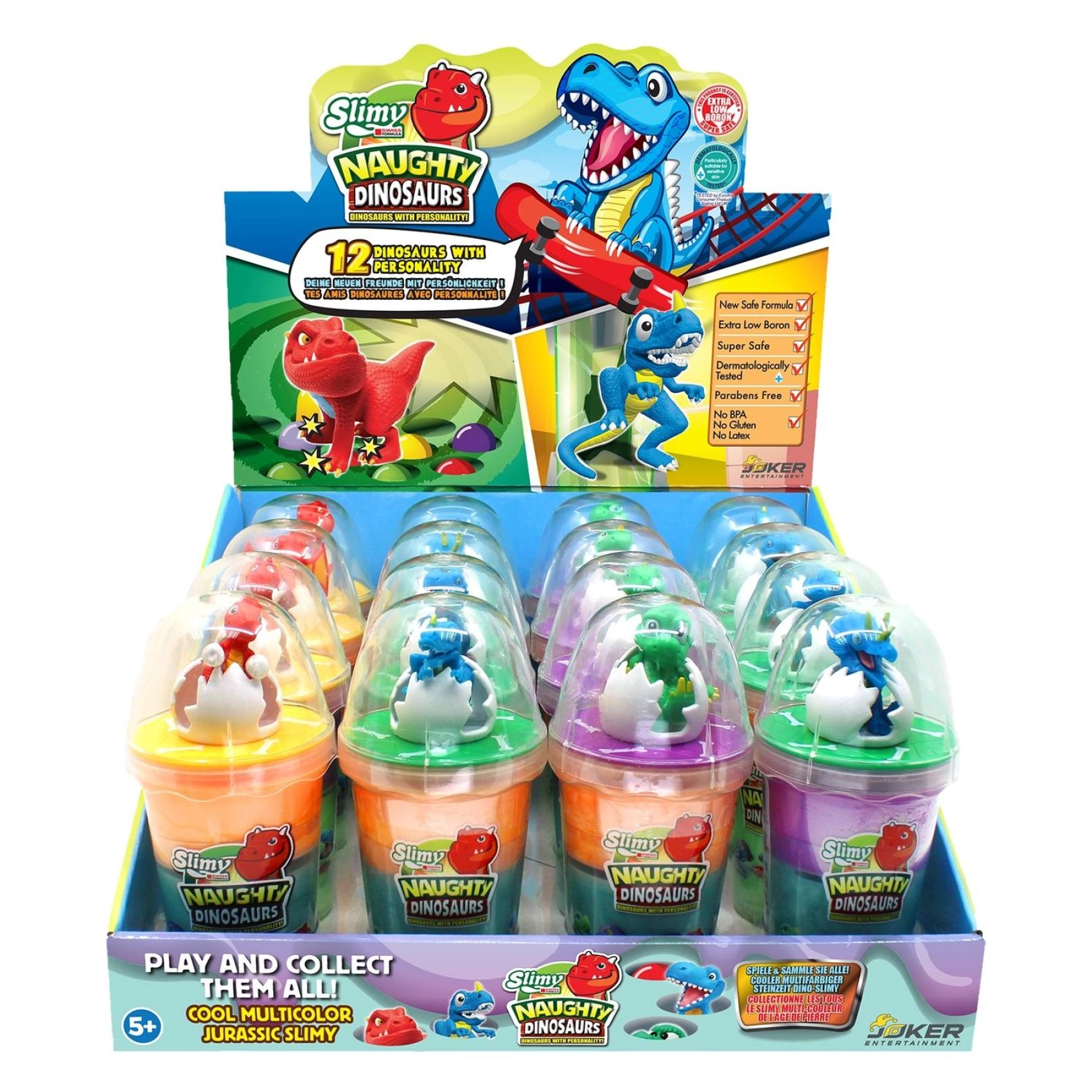 Η SLIMY παρουσιάζει την εμβληματική γλίτσα με έκπληξη – μέσα στο διάφανο κυπελλάκι θα βρείτε πολύχρωμη, ευχάριστα ελαστική γλίτσα και μια στιλάτη φιγούρα δεινόσαυρου. Τα παιδιά απολαμβάνουν το ζούληγμα, το τέντωμα και το πλάσιμο της γλίτσας, ενώ ο χαριτωμένος δεινόσαυρος εμπνέει ατελείωτες ώρες φανταστικού παιχνιδιού.