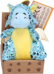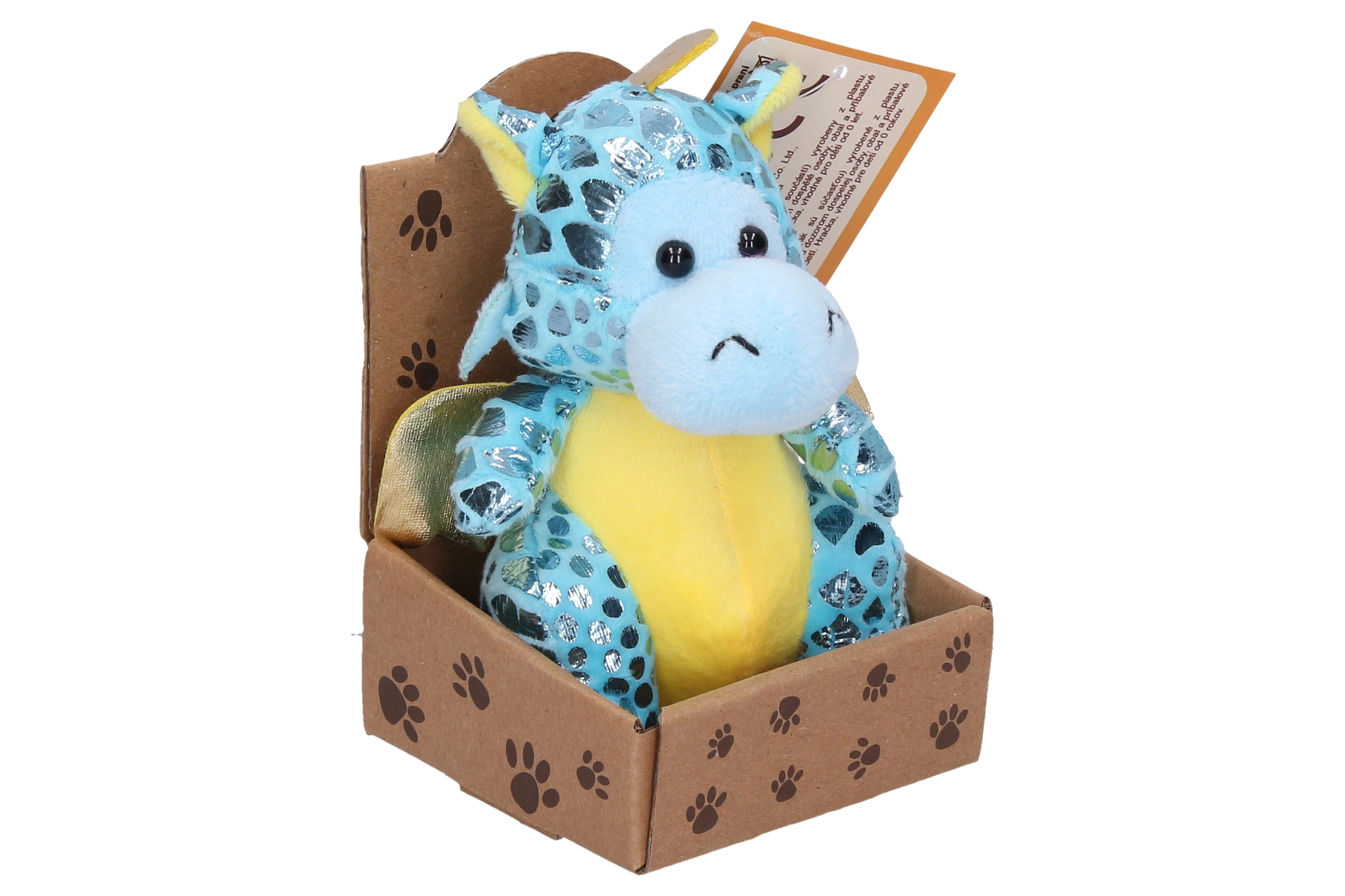 Χαριτωμένος λούτρινος δράκος ύψους 13 εκ. που θα ενθουσιάσει παιδιά και συλλέκτες. Έχει λαμπερή εμφάνιση, είναι απαλός στην αφή και διατίθεται σε πολλαπλές χρωματικές παραλλαγές – μωβ, πράσινο και μπλε. Ιδανικός ως δώρο ή για τη συλλογή σας.