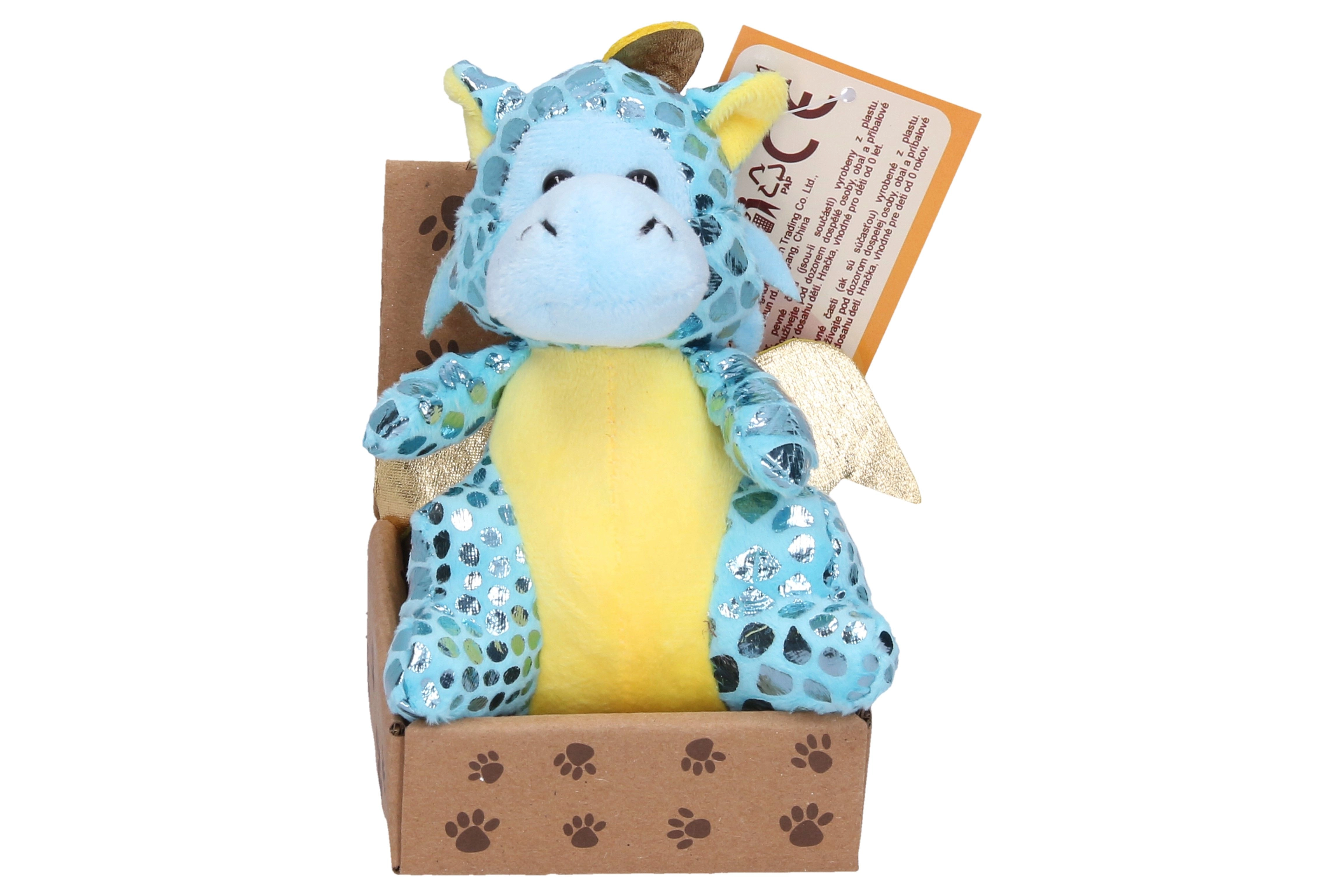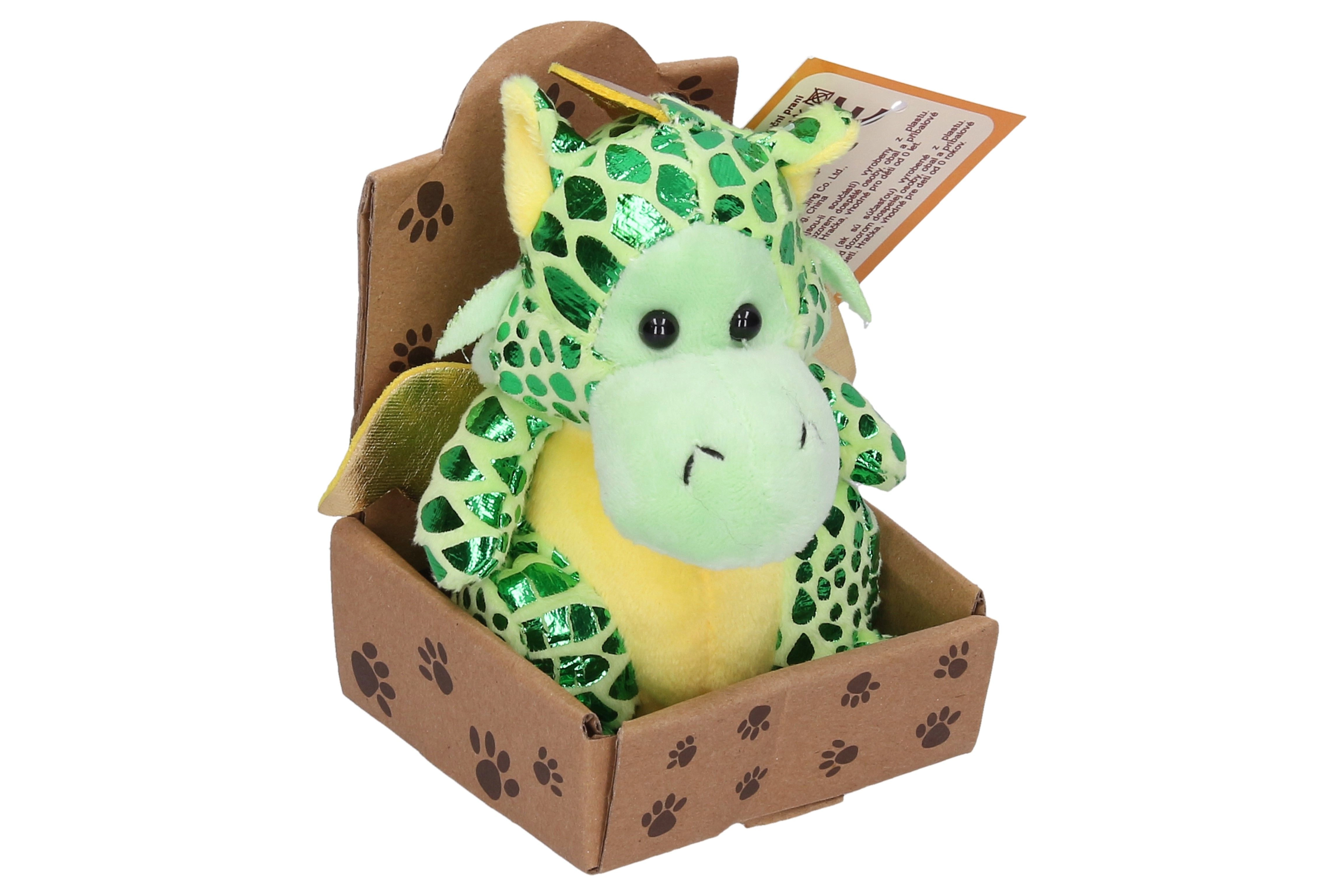 Αυτός ο λούτρινος δράκος προσφέρει χαρά με το λαμπερό του φινίρισμα και το συμπαγές μέγεθος των 13 εκ., ώστε να χωρά εύκολα σε σακίδιο ή σε ράφι. Το απαλό υλικό είναι ευχάριστο στην αφή και προσκαλεί σε αγκαλιές, ενώ τα ζωηρά χρώματα τον κάνουν ελκυστικό διακοσμητικό αλλά και σύντροφο στα ταξίδια.