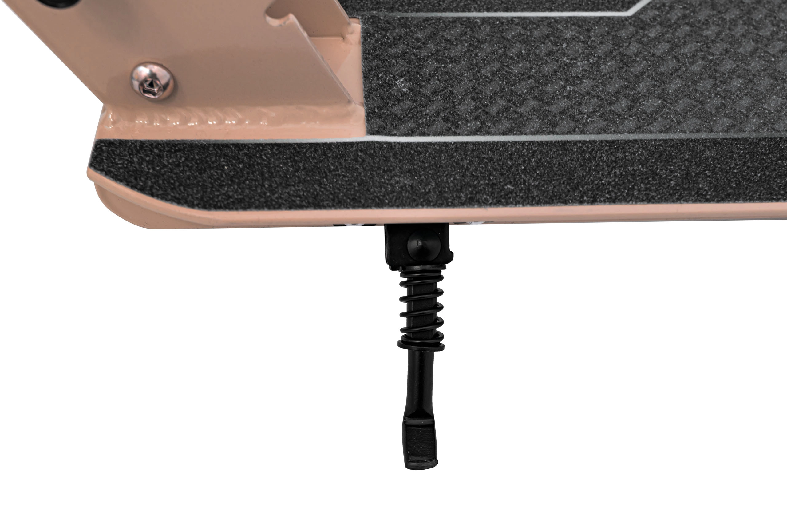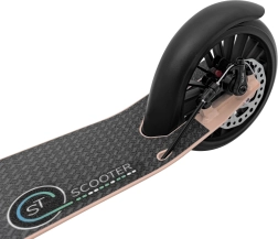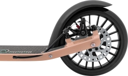Η ασφάλεια είναι στα χέρια σας: ο συνδυασμός χειροκίνητου δισκόφρενου και πίσω ποδόφρενου προσφέρει σίγουρο και γρήγορο φρενάρισμα. Οι καουτσουκένιοι τροχοί 190 × 35 mm απορροφούν άριστα τις μικροανωμαλίες και η αντιολισθητική επιφάνεια του deck κρατά σταθερό το πόδι ακόμη και στο βρεγμένο. Δεν λείπει το σταντ για άνετο σταμάτημα.