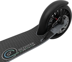Για ασφάλεια, το πατίνι διαθέτει διπλό σύστημα φρένων – χειροκίνητο δισκόφρενο πίσω και ποδόφρενο στον λασπωτήρα. Τριών σταδίων ρύθμιση ύψους τιμονιού (85–99 cm) για αναβάτες διαφορετικού ύψους και εργονομικές λαστιχένιες χειρολαβές για άνεση ακόμη και σε μεγαλύτερες διαδρομές.